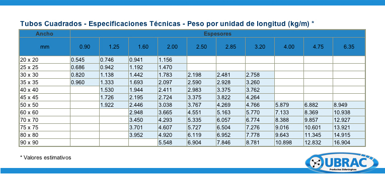 Los tubos cuadrados para uso estructural son utilizados en la construcción en general y en la herrería de obra, para la realización de estructuras metálicas livianas y pesadas, así como para cartelería y señalización de carreteras. Se los utiliza también en la industria del mueble y camping, y en algunas maquinarias agrícolas.